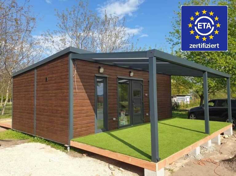Modulhäuser sind nachträglich erweiterbar. Unsere isolierten Aluminium-Terrassen lassen sich zum Wintergarten umbauen und verlängern die Nutzungsdauer.
